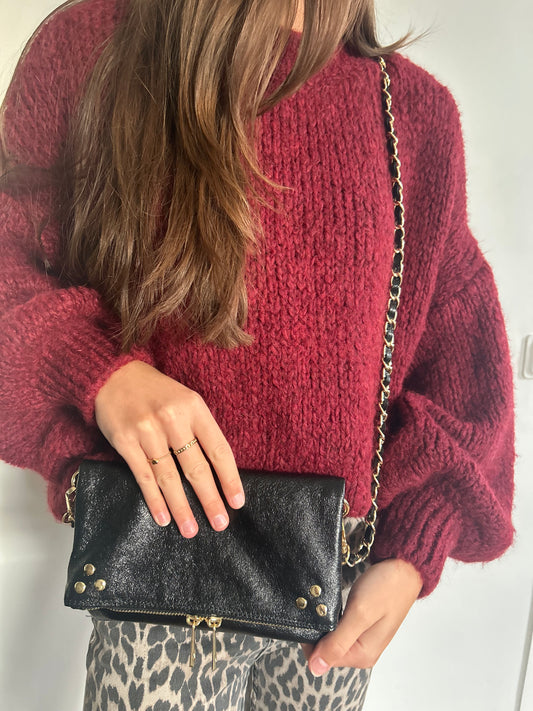 Leren schoudertas studs metallic - zwart