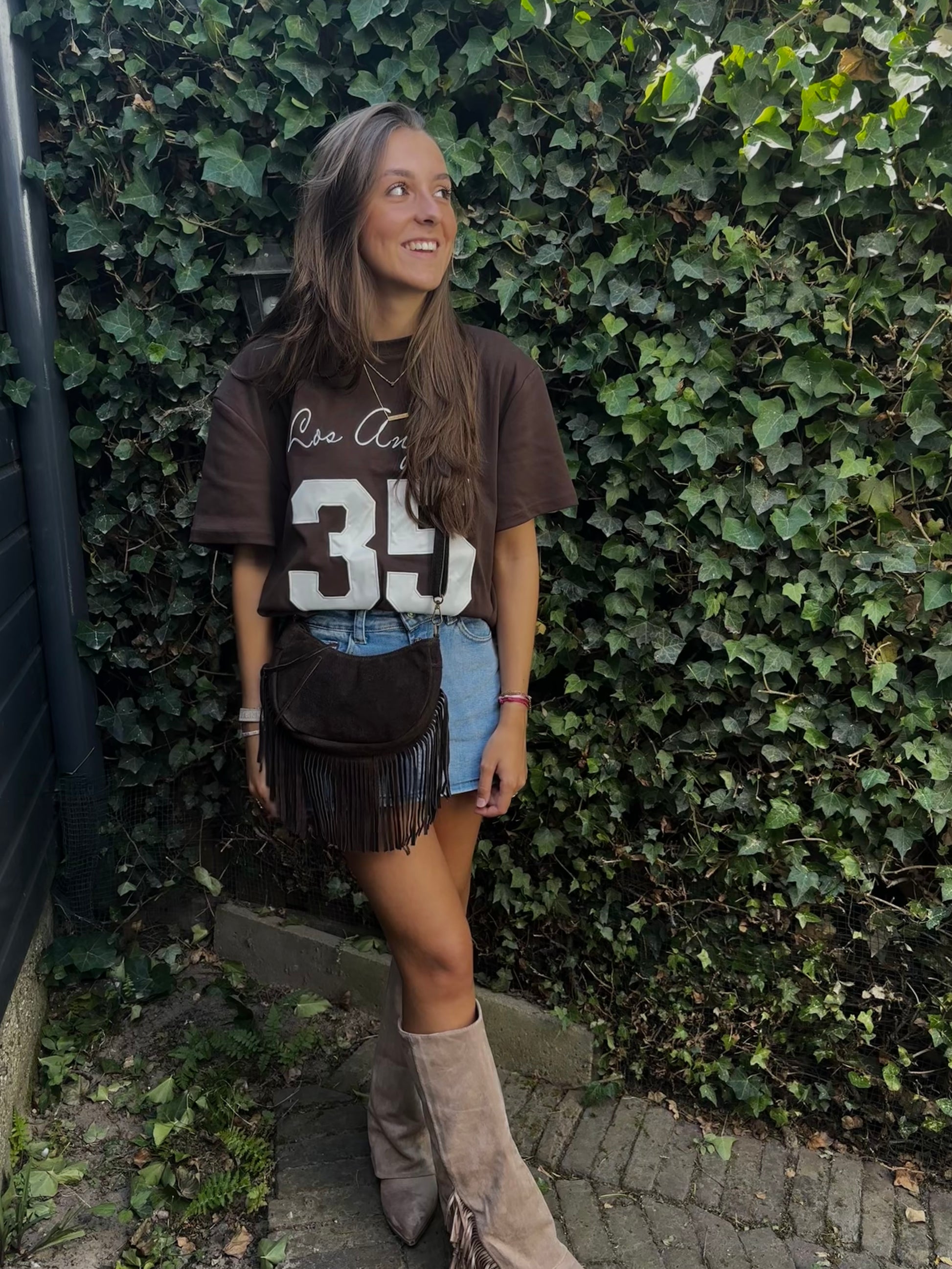 Draag ‘m met onze Festival Fringe Boots en de suède schoudertas met franjes voor een on-trend herfstlook.