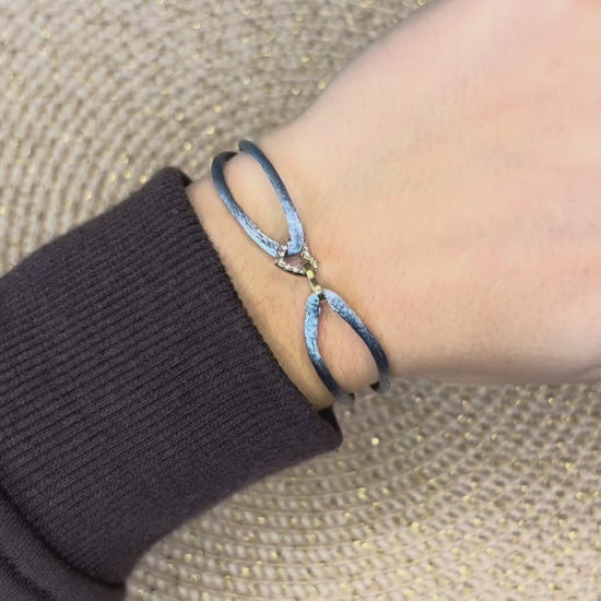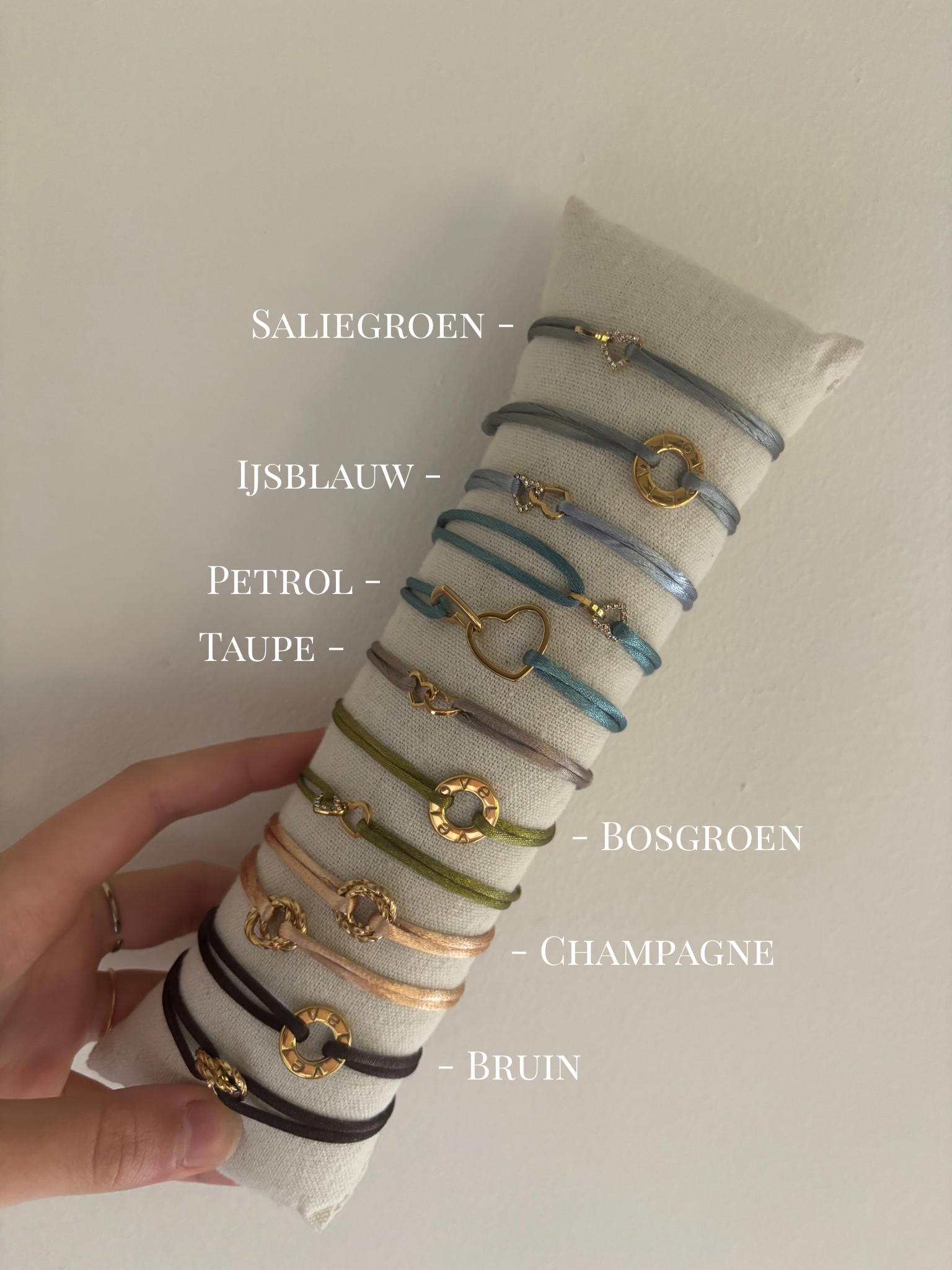 Maak je look helemaal persoonlijk met deze handgeknoopte satijnen armband. Je kiest zelf welke kleur satijnkoord je wilt, zodat de armband perfect past bij jouw stijl. Elke armband wordt met de hand op bestelling gemaakt.