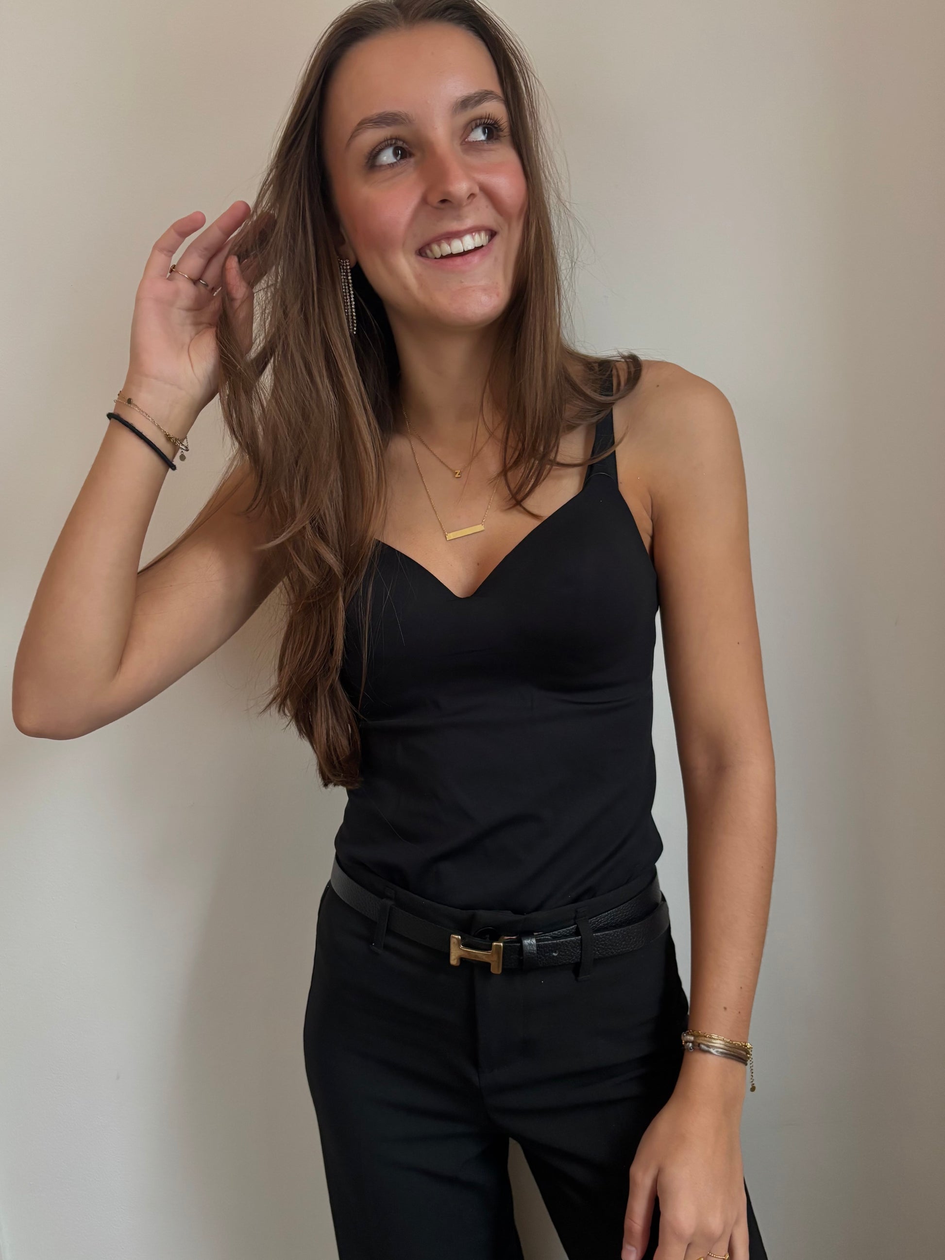 De musthave top voor in jouw garderobe! Stylish, basic maar elegant. De perfecte basis voor onder jouw blazer. Hoe leuk is deze top in combinatie met onze zilveren glitter rok?!